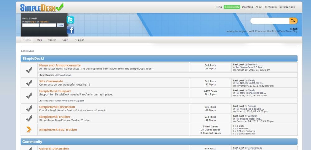 SimpleDesk provides a fully integrated ticket based help desk solution, with the capability to have the forum and have full ticket to topic and back functionality, or run in a standalone mode.