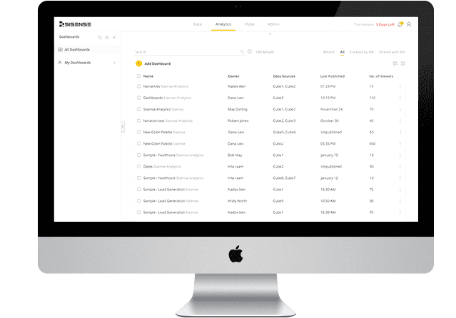 Sisense – business intelligence tool that provides the easiest way to create insights and business value from complex data. Prepare, analyze and visualize complex data using a single, agile tool that scales and adapts to business needs. Sisense removes workload and eliminates the need to maintain massive hardware or software stacks.