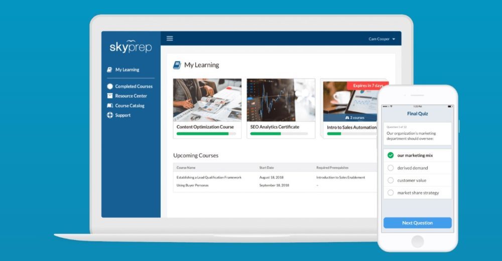 The applications of SkyPrep go beyond the realm of business. Other potential users who can benefit from the SkyPrep platform include educators, online entrepreneurs, and even individuals who sell online courses. SkyPrep provides a platform that training administrators can use to create, manage, and sell training courses. Main features include blended learning, automated learner enrollment, and custom branding.