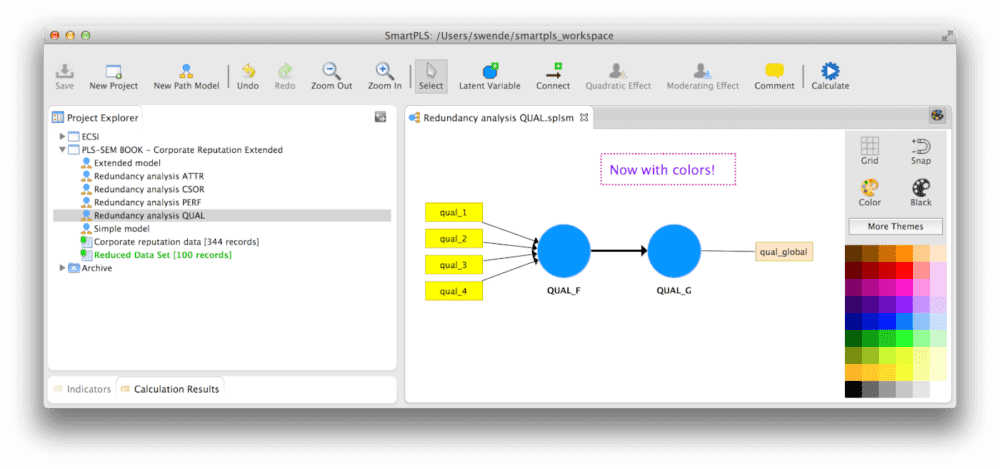 The intuitive graphical user interface lets your create pretty path models with SmartPLS in minutes. Project Explorer helps you organizing your data and models efficiently in separate projects. You can easily export, import and archive your projects when using SmartPLS.