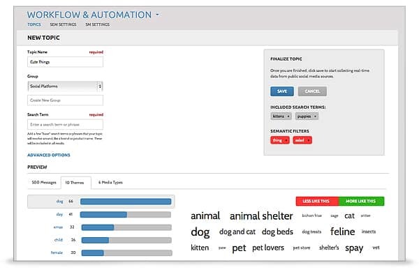 Social Intelligence Center offers customers real-time data visualization through its highly configurable and dynamic command center, which provides a range of unique views that give users rapid insights into social conversations and information. Extending visibility and bringing social data to life, Social Intelligence Center also provides interactive data visualizations by geography, topic or theme, influencers, volume, and sentiment.