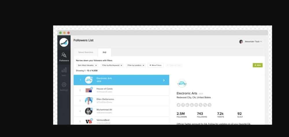 The segment feature provided by SocialRank enables users segment their followers and profiles by using various sorting and filtering options. The segment feature works immediately your followers and their profiles are in SocialRank. SocialRank also features the identify feature that facilitates pulling in of all your followers and their profiles. This provides a good platform for users to easily identify their followers. Filtering your followers is made easy by SocialRank as its filters are able to pin-point your followers based on bio keyword, geographic location, word or hashtag search, general activity of the follower, and hashtag of followers. Sorting off followers is also offered by SocialRank through the sorting options.