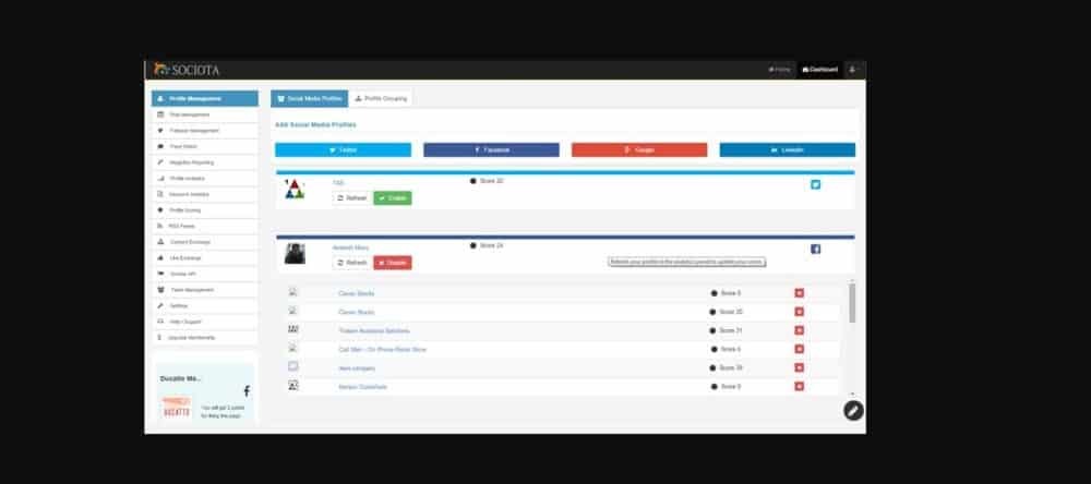 ADDITIONAL INFORMATION Sociota is a social media management, monitoring, scheduling and analysis tool that helps you manage your Facebook and Twitter campaigns in an efficient and productive manner.