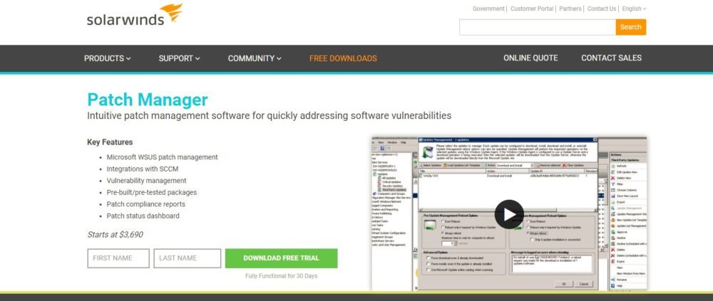 SolarWinds features Microsoft WSUS management, which allows users to manage patches for Microsoft product suite from Windows Update Agent. It also offers an extension to manage third-party patches as well. The product also features SCCM integration, which allows users to manage security patches for third-party software and solutions.