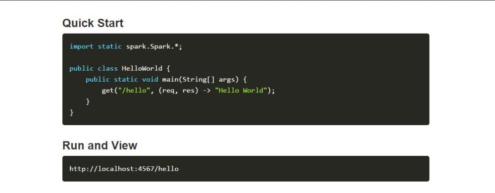Spark is built around Java 8's lambda philosophy, which makes a typical Spark application a lot less verbose than most application written in other Java web frameworks.Spark focuses on being as simple and straight-forward as possible, without the need for cumbersome (XML) configuration, to enable very fast web application development in pure Java with minimal effort.