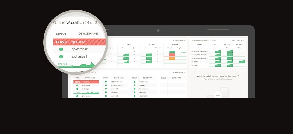 Spiceworks Network Monitor is simple and easy to use network monitoring software that provides real-time status an alerts for the critical devices and identifies a problem before users notice.