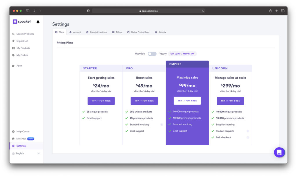 Pricing is where you should slow down and read carefully. Spocket has: