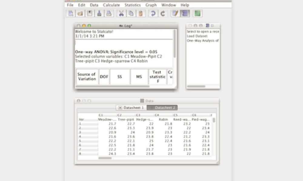 They two main windows include Log and Datasheet. The Log window is where the outputs of computations will be displayed. The Datasheet Window contains sheet of data values whereby the user can edit and manipulate the data values using the various utilities that are provided. Statcato also features two main features that enable instructors and college statistics students perform elementary statistical computation at ease.