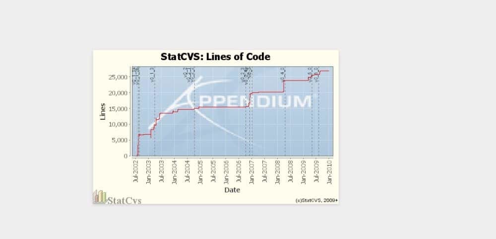 Files with most revisions , Directory Sizes , Repository Tags Number of LOC per ver, Repository tree with file count and lines of code , LOC and Churn the evolution of LOC and the amount of change per day, Repo Map the dynamic hierarchical view of your repo for the last 30 days. The current version of StatCVS normally generates a static suite of HTML documents containing tables and chart images.