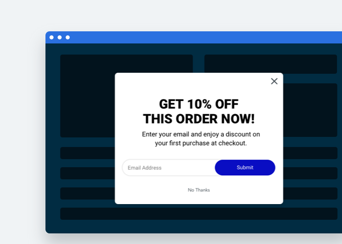 • Grow email list shortcut turns your visitors into email subcribers before leaving your site.