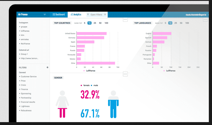 Talkwalker search index is one of the largest, covering over 150 million sources in 187 languages. The dashboard is extremely user friendly and features intuitive filters and reporting functionalities.