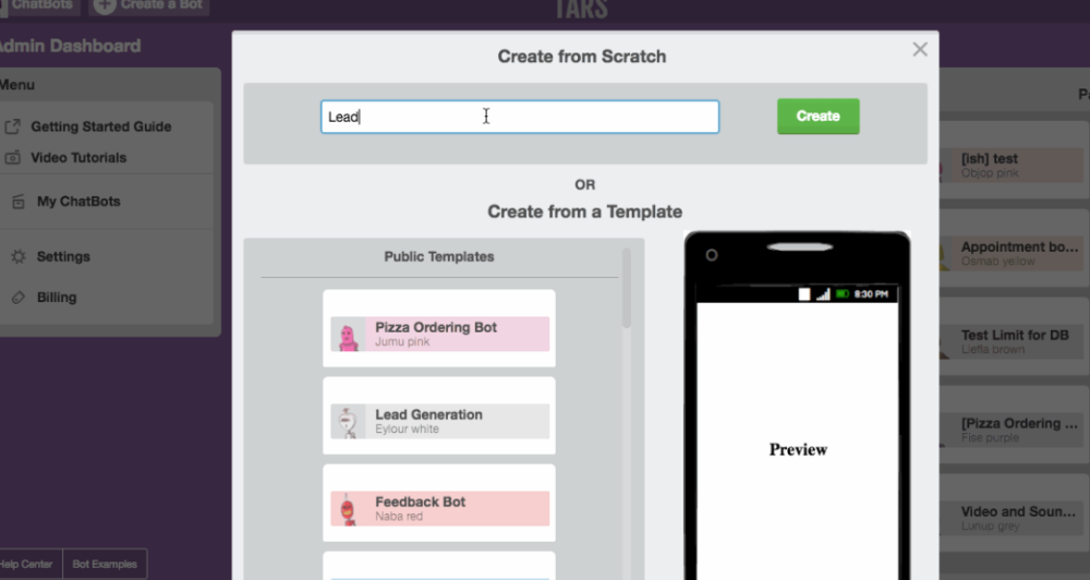 Tar has a DIY, Drag and Drop Chatbot Builder Tool. Using this, you can make your own chatbot in less than an hour and there is no programming knowledge required.