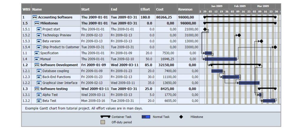TaskJuggler is a modern and powerful, free and open source software project management tool. TaskJuggler offers you its new approach to project planning and tracking that is more flexible and superior to the commonly used Gantt chart editing tools. Its useful when you’re doing project scoping, resource assignment, cost and revenue planning, risk and communication management.