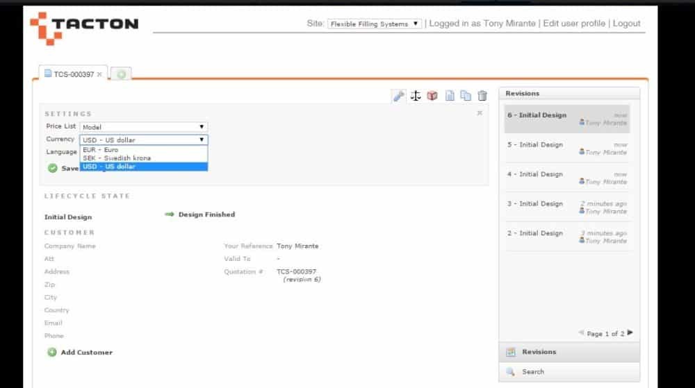 Using CPQ solutions from Technicon and Tacton, lets the user generate quotes that represent the best products for the user’s customer’s needs and never have to worry about the user’s competitors being able to out-respond the user.