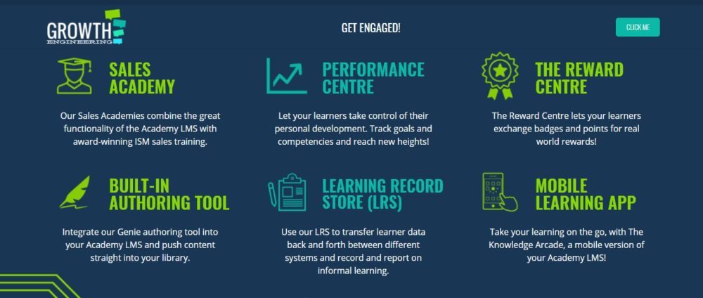 Growth engineering is an online learning technology system that provides solutions through 3 platforms which include: The Academy LMS, Genie, and The Knowledge Arcade. Growth engineering technology aims at eradicating dull online learning and creates fun and creative learning.