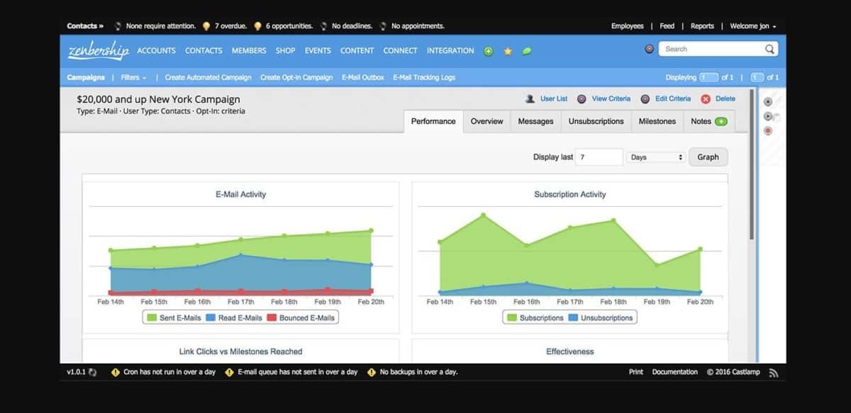 Zenbership is an open source CRM platform, designed to provide a combination of tools to assist membership-based businesses. Some of the features include member management, e-commerce, marketing, events management and web integrations. Zenbership’s account management tool allows users to create custom databases, manage group contacts collectively and automate intelligent email campaigns with followups. Employees can maintain a historical log of interactions with contacts allowing them to actively engage opportunities, set deadlines, and schedule appointments with access to a personalized calendar and dashboard. The Zenbership software links social media profiles with contacts who are active on Twitter, Facebook and LinkedIn, providing…