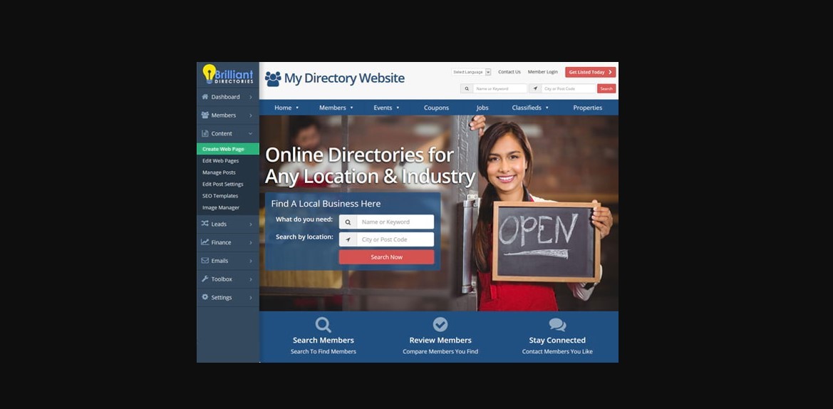 Brilliant Directories is a directory software that supports managing members, publishing content, launch professional directory websites, and generating revenue. Brilliant Directories makes it to power your site by allowing users to effortlessly build beautiful online directories for any industry, purpose, and location. The key features offered by Brilliant Directories include content publishing, design and branding, membership management, recurring payments, searchable directory, banner AD management, events calendar, email marketing, instant SEO rankings, and hosting and support. The design and branding feature allows creating a stunning directory using your logo and robust design settings. The content publishing feature allows posting articles, events,…