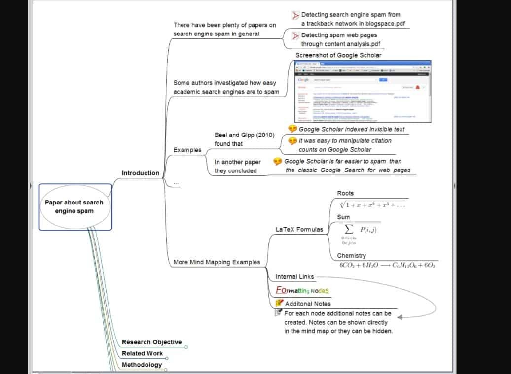 - Links and attachments: A good mind mapping software should be capable of supporting a good number of links and attachments; i.e. web pages, folders, files and others.
