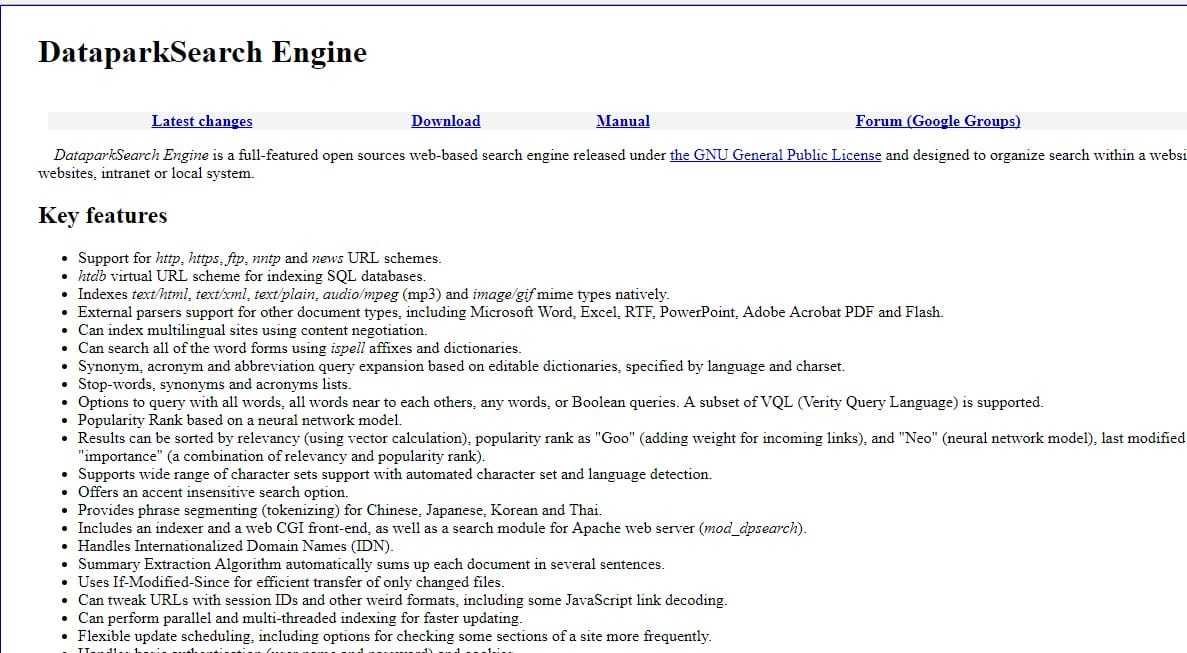 DataparkSearch Engine is a full-featured open sources web-based search engine released under the GNU General Public License and designed to organize search within a website, group of websites, intranet or local system. Users can use DataparkSearch group at the Google Groups (groups.google.com/group/dataparksearch/) to seek an advice on DataparkSearch. Users can also share their experience using DataparkSearch in this group. DataparkSearch is a full-featured web search engine. DataparkSearch consists of two parts. The first part is an indexing mechanism (the indexer). The indexer walks over hypertext references and stores found words and new references into the database. The second part is…