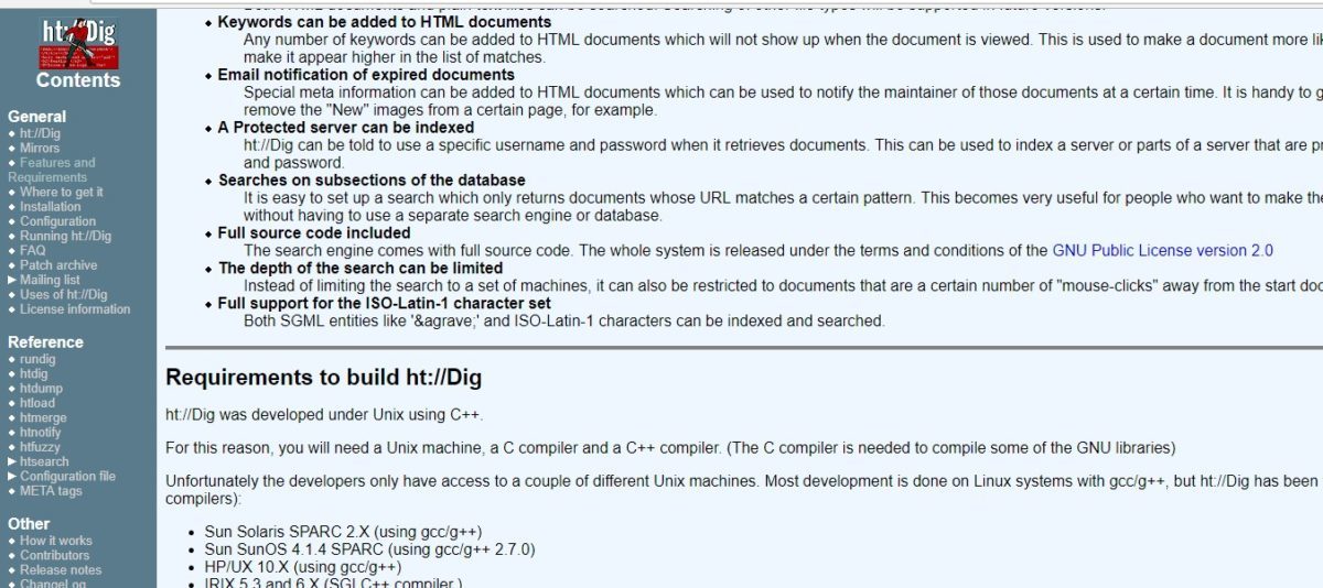 The ht://Dig system is a complete world wide web indexing and searching system for a domain or intranet. This system is not meant to replace the need for powerful internet-wide search systems like Lycos, Infoseek, Google and AltaVista. Instead it is meant to cover the search needs for a single company, campus, or even a particular sub section of a web site. As opposed to some WAIS-based or web-server based search engines, ht://Dig can easily span several web servers. The type of these different web servers doesn't matter as long as they understand common protocols like HTTP. ht://Dig was developed…
