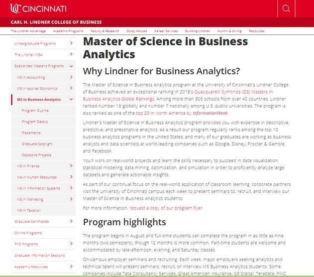 Master of Science in Business Analytics – – University of Cincinnati (we’ll have over 90 full time students this fall)