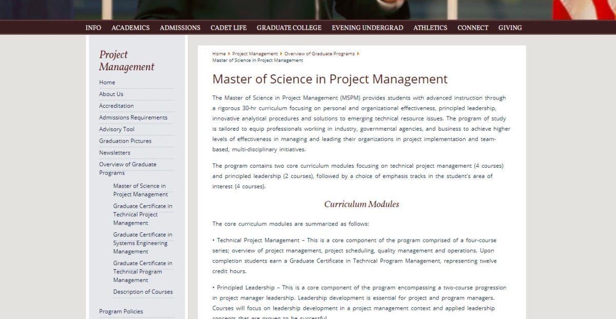 The Citadel – The Military College of South Carolina, Master of Science in Project Management
