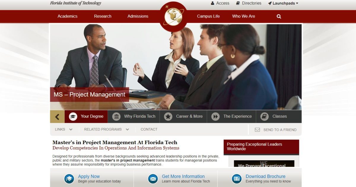 The Florida Institute of Technology’s Master's in Project Management program develop skills and competencies in project management and in identified concentration areas such as operations research and information systems to help you become a dynamic and effective project manager.
