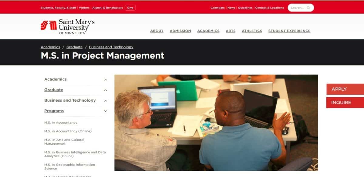 Saint Mary’s University of Minnesota, Master of Science in Project Management