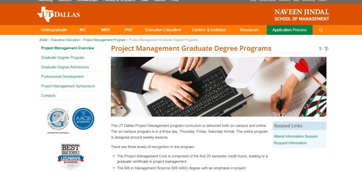 The University of Texas at Dallas, Master of Science in Management Science (Project Management)