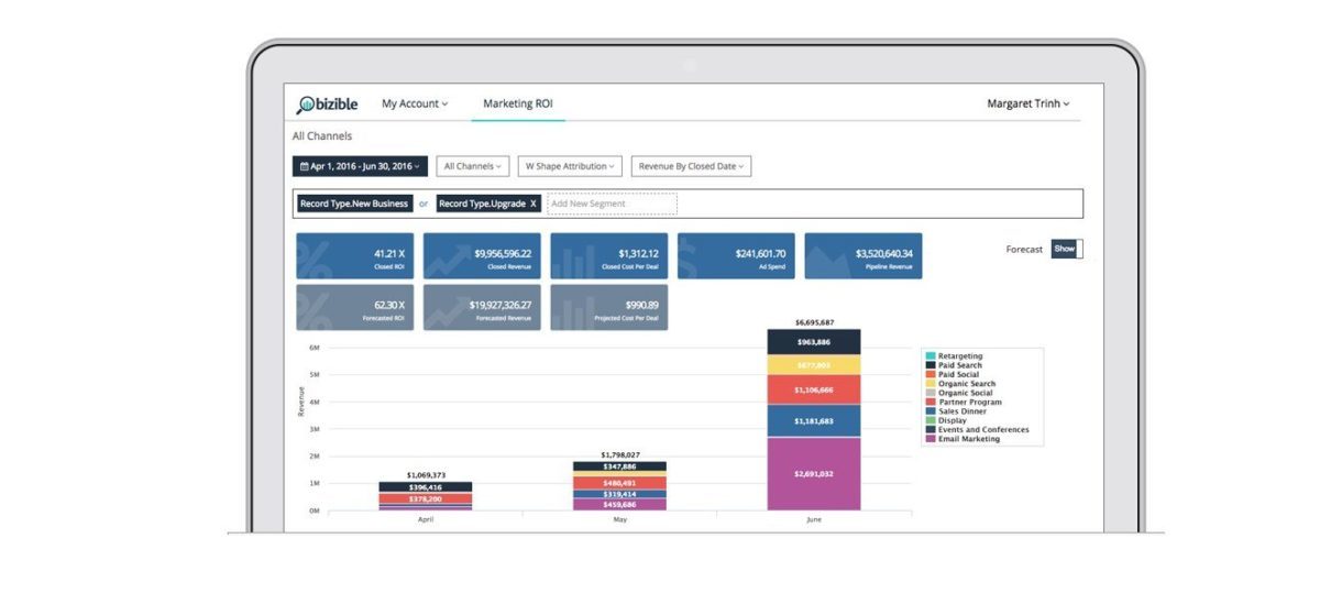 Bizible automatically track marketing interactions across all channels, from keywords to conferences and everything in between.Insights to help you measure and optimize marketing efforts for revenue to maximize growth and understand and impact the future with a goal-oriented and high fidelity forecast to help you make decisions. Bizible unifies user behavior and advertising data with sales outcomes, allowing user to control the success of the marketing investment. Bizible use omni-channel marketing attribution data to align teams under one goal: revenue. Bizible’s “CMO” dashboard provides clarity across all the marketing channels -- whether offline or online -- so one can maximize…
