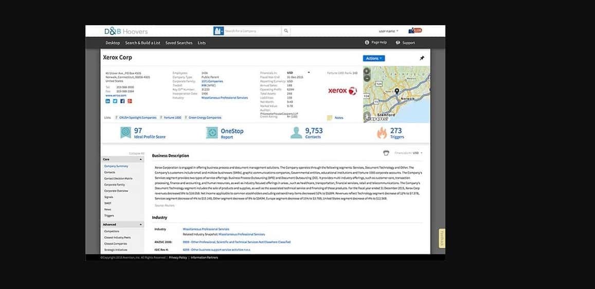 D&B Hoovers combines the powers of former Hoovers solution, insights-rich Dun & Bradstreet data, and the robust Avention OneSource platform to provide sales, marketing, research, and procurement professionals with the information they need to make informed decisions and gain competitive advantage. D&B Hoovers profiling and prospecting capabilities give you actionable insights about companies, contacts, and their areas of interest so that you can develop relevant messages and uncover your best prospects. D&B hoovers intuitive analytics helps you target qualified sales leads, access up-to-date business information, and improve Return on Investment (ROI). D&B Hoovers aggregates and selects sources of information from…