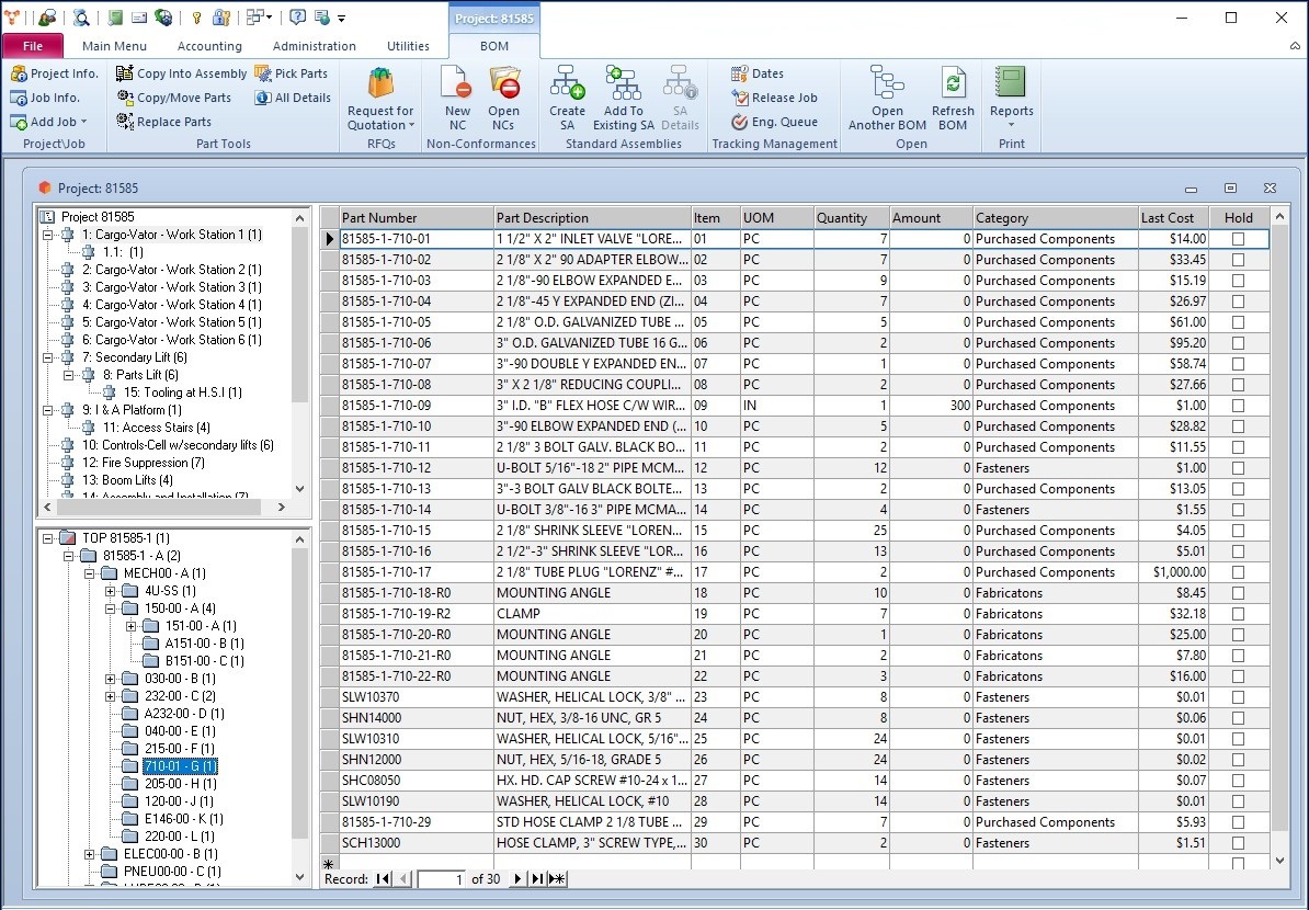 • unparalleled control releasing Assemblies, Sub Assemblies and Parts to Purchasing