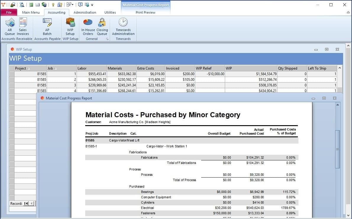 There are over 200 reports in the system that allow you to slice and data every which way. Featuring Preliminary BOM Cost Estimate and Real Time Committed Job Costing reports, you can keep track of your Project's costs to ensure you stay on track.