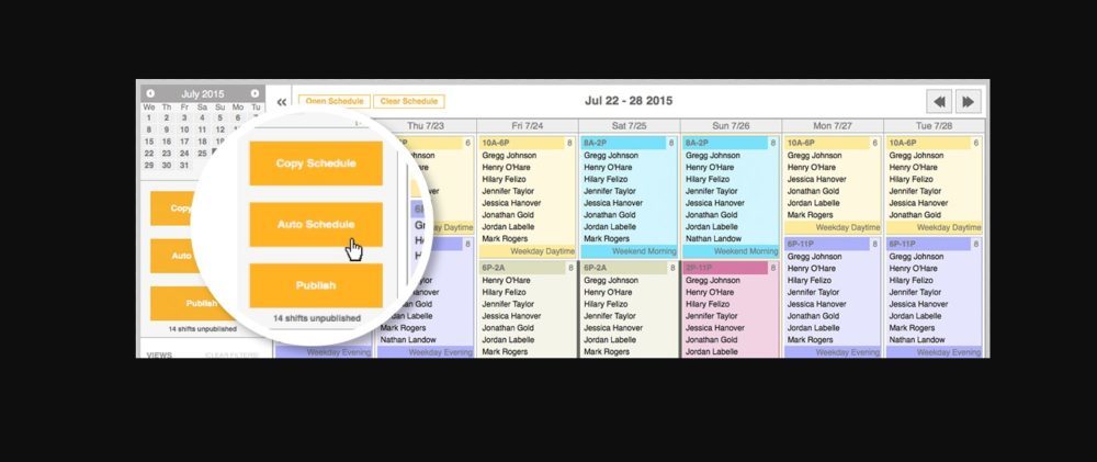 Auto scheduler tool enables you to quickly and easily create employee schedules. It also enables you to create or approve staff schedules no matter where you are. Schedule and payroll reporting enables you to check how many hours your employees are scheduled, at any time, for any time period.