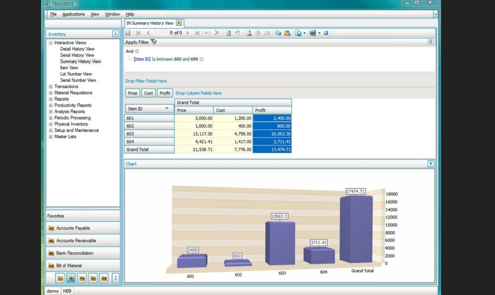 Traverse is a multi-featured ERP/Business Management Software that organizes and automates information and workflows that help with efficiency of processes while providing better business insight through intelligent reporting.