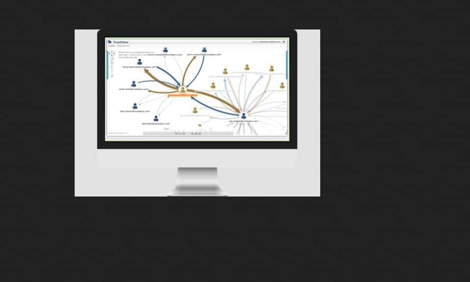 The resulting insights enable organizations to provide smarter management over sales activities, increase efficiency in internal investigations, as well as develop their most valuable assets – the people. TrustView is a visualization and reporting application that ingests the analytics residing in TrustVault. Using statistical analysis and advanced social network analytics on communication data, TrustView can generate a relationship map for single individuals, groups, departments or entire organizations. These powerful, intuitive visualizations can be fine-tuned and analyzed to help businesses solve a myriad questions relating to commercial, security or HR challenges and opportunities.