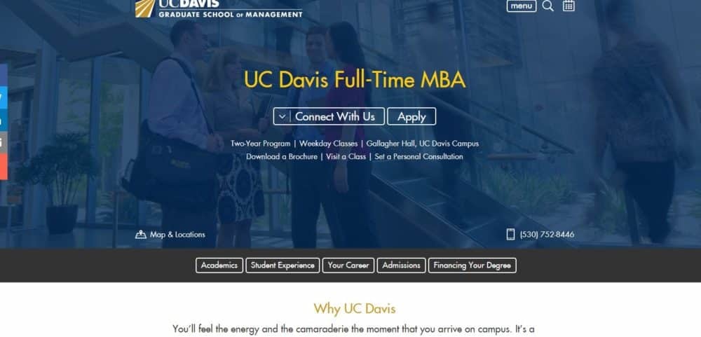 The University of California’s Davis Graduate School of Management MBA program focuses on real-world practice, analytical skills, technical skills, and leadership training. The UC Davis MBA program has been ranked among the best programs in the country for 22 consecutive years by the U.S. News and World Report