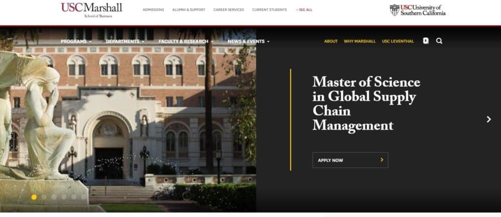 The Master of Science in Global Supply Chain Management is a joint program offered by the Marshall School of Business in collaboration with the Viterbi School of Engineering, two top-ranked professional schools at the University of Southern California.