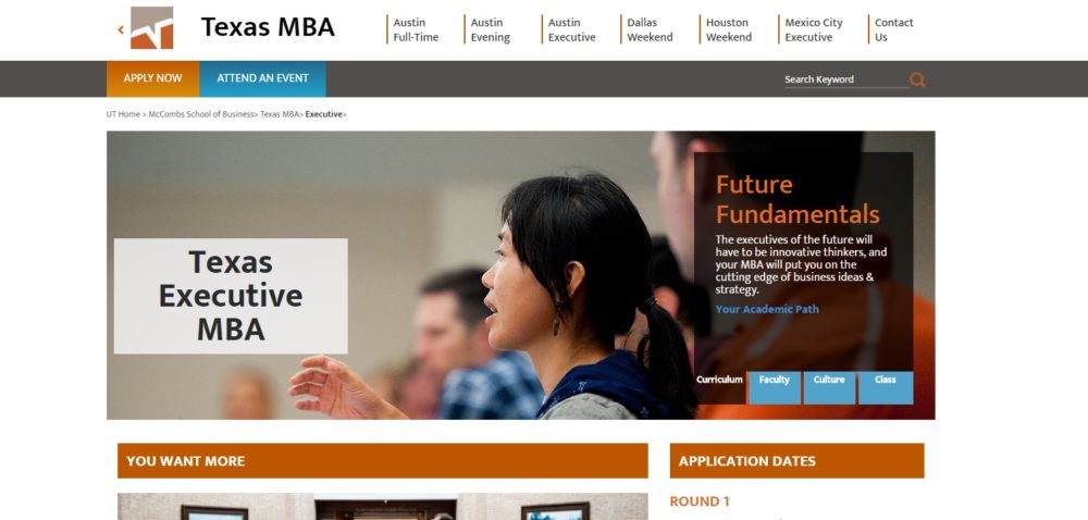 University of Texas at Austin, McCombs School of Business, Executive MBA