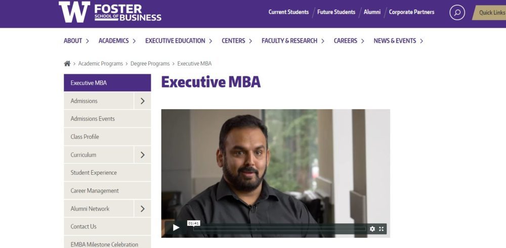 Foster School of Business University of Washington offers Executive MBA program is taught by highly experienced professionals from a variety of industries in a collaborative learning environment, and features relevant coursework that delivers better decision making, improved managerial skills, and enhanced leadership abilities to solve real-world business and organizational problems.