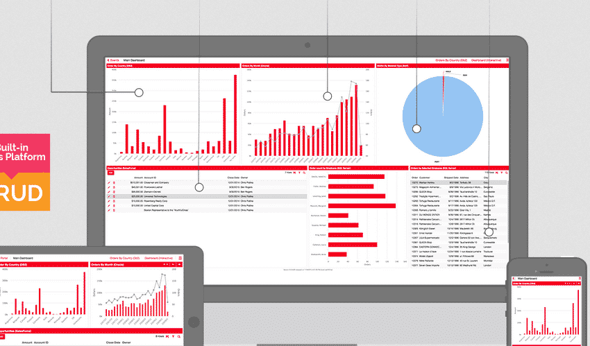 VINYL allows you to create beautiful yet powerful applications and charts from multiple data sources including complex analytics all together on the same screen without writing a single line of code.