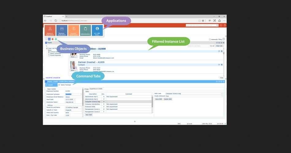 The application framework allows developers to assemble commercial grade software rapidly with minimal coding, generating high quality Windows and Web applications with a consistent appearance and behavior.