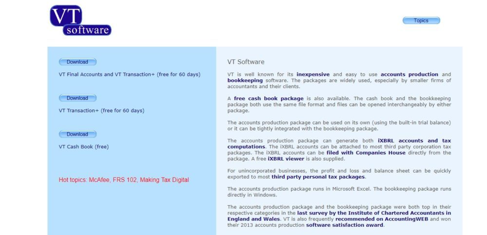 VT Cash Book is free accounting system that allows to enter income and expenses and reconcile bank and cash accounts producing profit and loss, balance sheets and ledger reports.