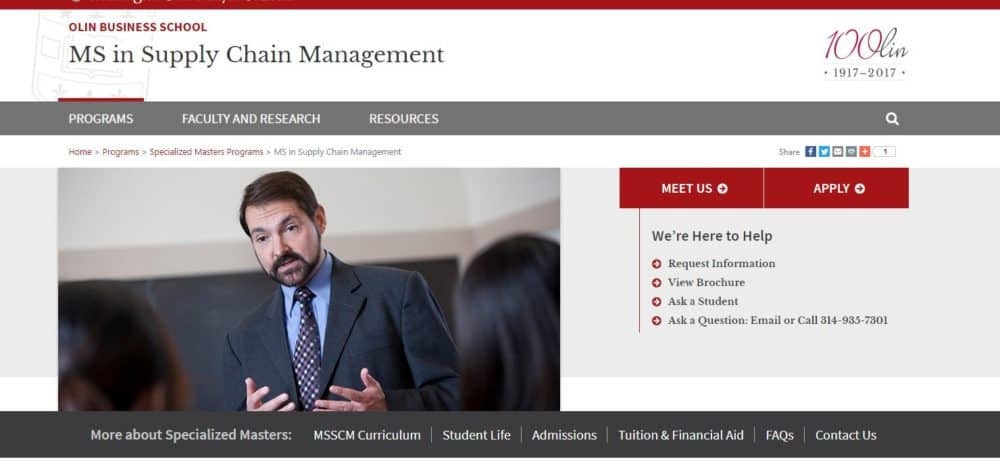Master of Science in supply chain management at Washington University is a STEM-designated program due to its focus on Science, technology, engineering and mathematics throughout the curriculum. The school understands that approach to data keeps changing hence keeps providing students with current and innovative approach to data.