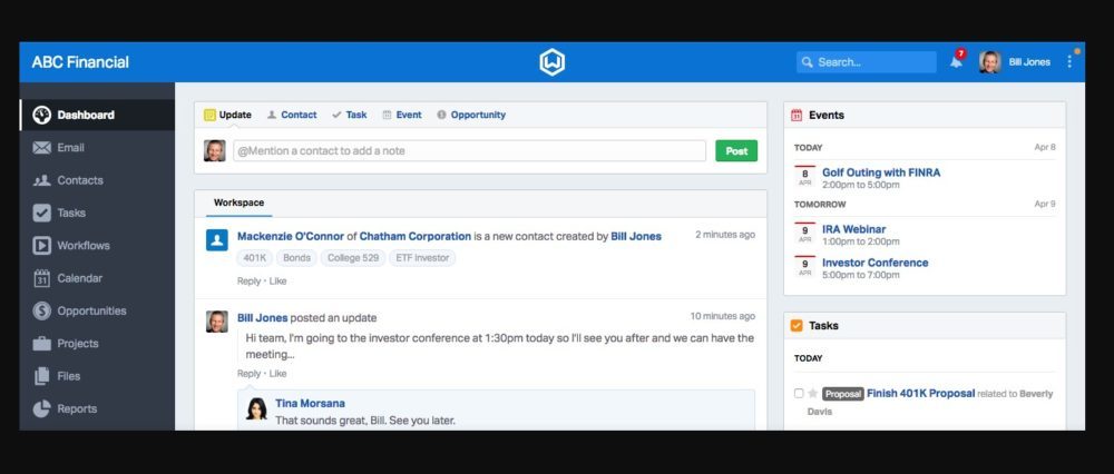 Wealthbox is a modern CRM for financial advisors that offers a simple, social and collaborative wealth management platform that keeps businesses connected with their clients, prospects, and staff with ease.
