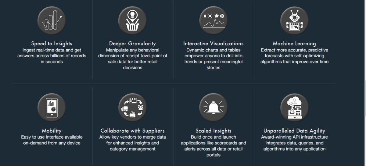 SwiftIQ’s unique ability to process billions of basket-level transaction records in near real-time and convert that into on-demand mobile visualizations, dayparts, affinities and attribution fosters a new level of retailer/supplier collaboration and innovation.