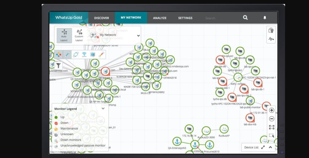 WhatsUp Gold is a remote network monitoring and management software that provides the up and down status and performance information for network devices and servers.