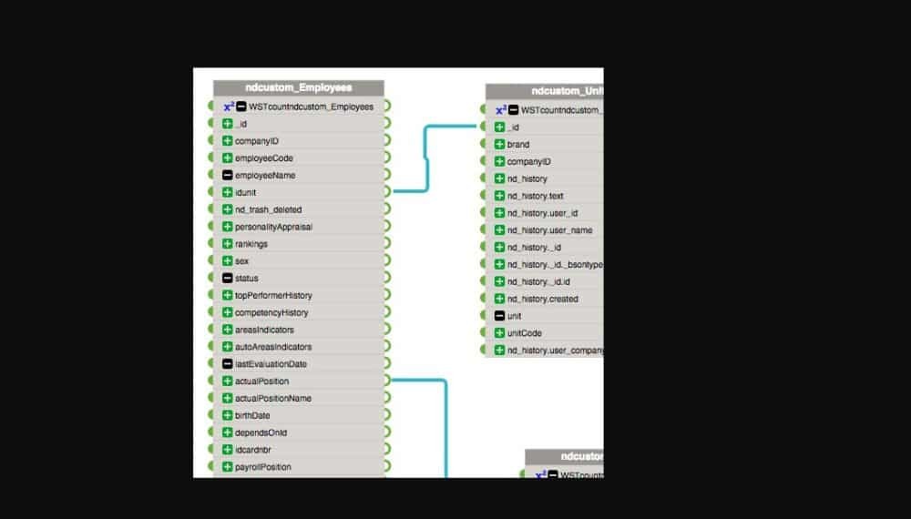 Mongodb can be installed in a different server, if so, users should configure the connection in the /server/config.js production environment. Widestage uses a mongoDB native connector that is capable to run queries using joins between different collections. Widestage detects nested elements accross user collections and let users use those in reports showing or filtering the mongodb data.