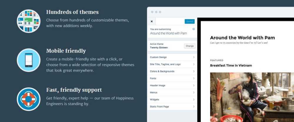 Wordpress choose from hundreds of customizable themes, with new additions weekly and create a mobile-friendly site with a click, or choose from a wide selection of responsive themes that look great everywhere.