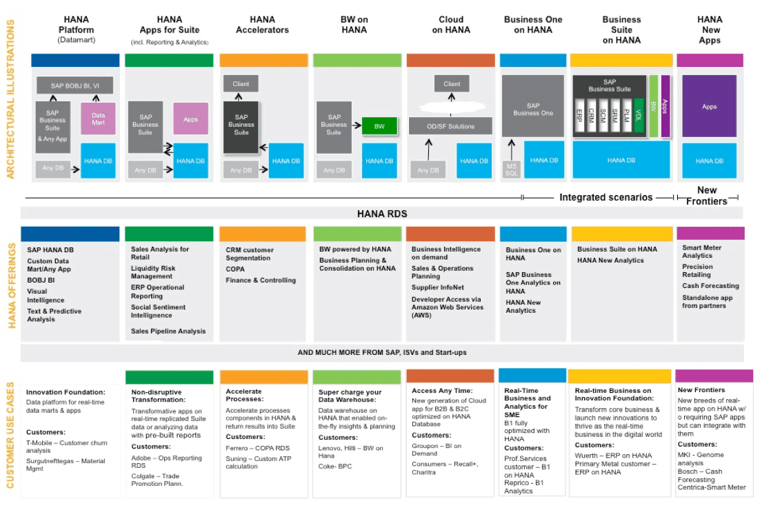 SAP HANA thus provides current insights almost immediately and opens up the possibilities for news ways of conducting business. SAP HANA integrates a number of SAP components including the SAP HANA database, SAP LT (Landscape Transformation) Replication Server, SAP HANA Direct Extractor Connection (DXC) and Sybase Replication technology. This is delivered as an optimized appliance. This preconfigured Appliance consists of in memory software bundled with hardware delivered from the hardware partner such as HP, IBM, CISCO, Fujitsu etc